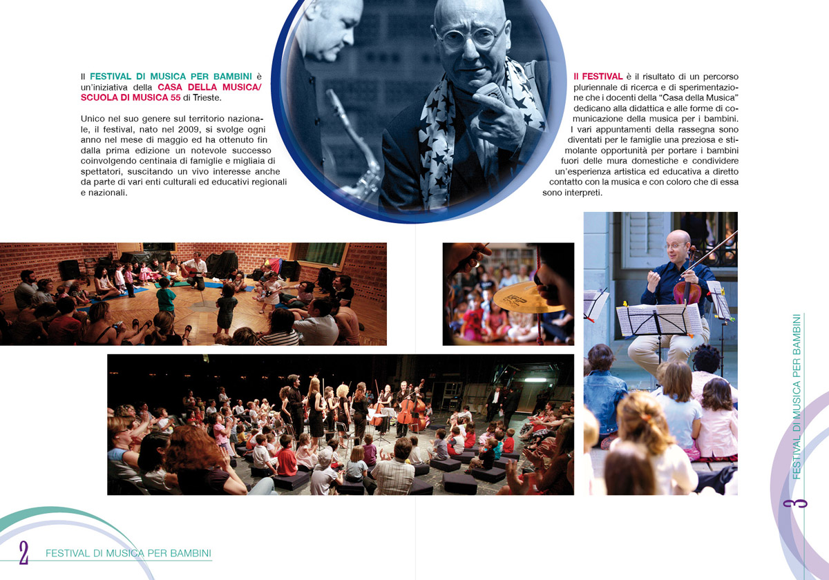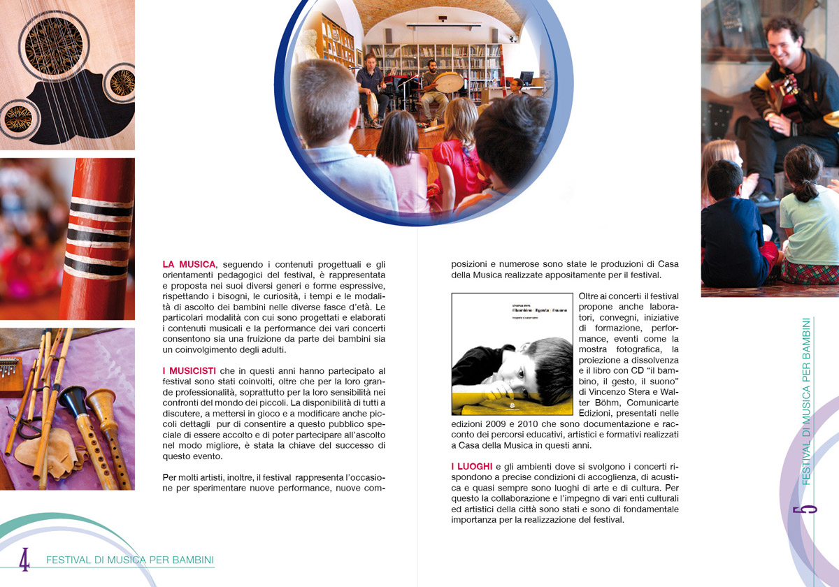 Pre Casa della Musica | Scuola di Musica 55 ho realizzato una serie di reportage fotografici durante le attività del “Festival di musica per bambini”. Nel settembre 2011 ho realizzato le grafiche per la brochure del “Festival di musica per bambini”.