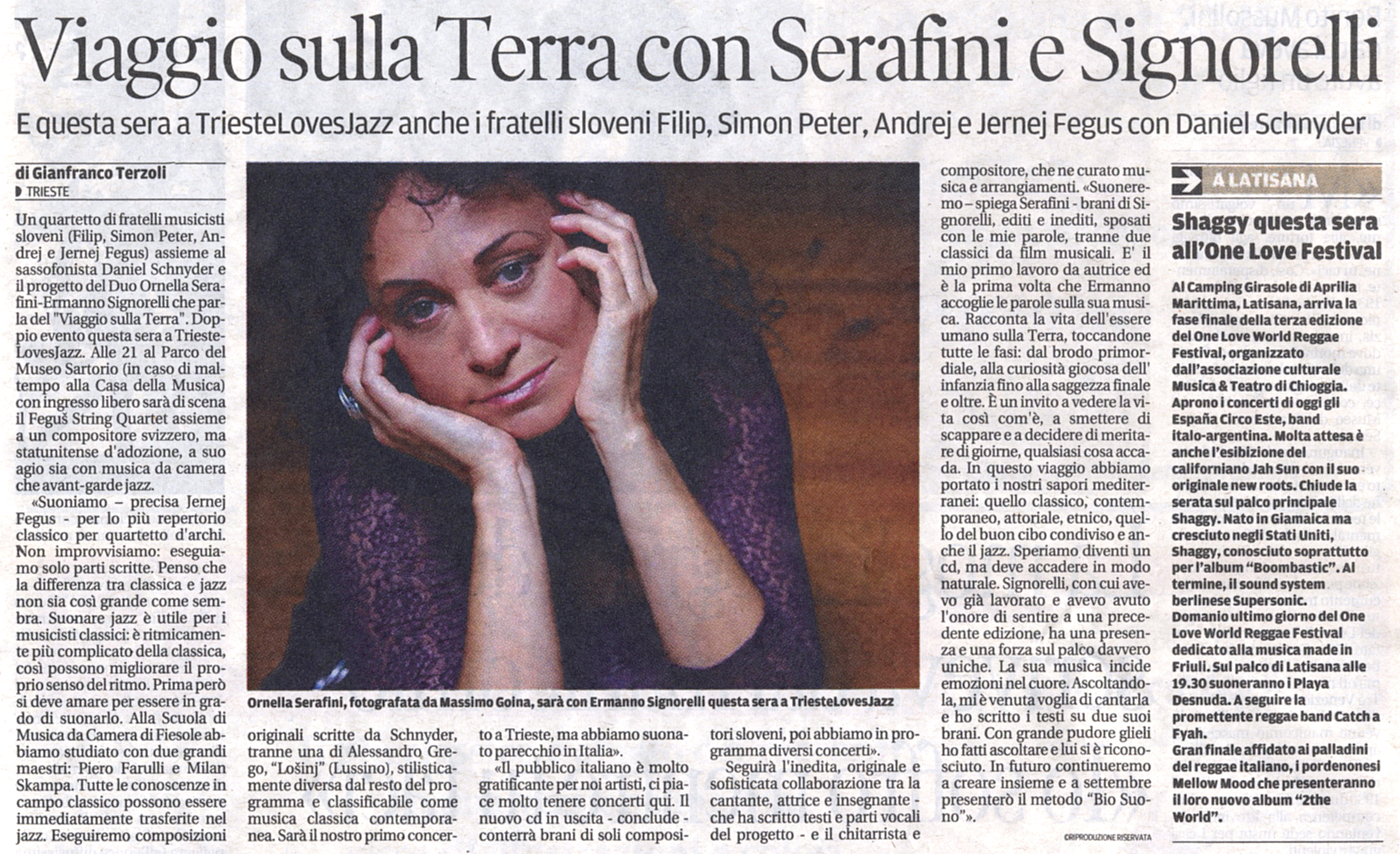 IL PICCOLO, 25 luglio 2015. Mio ritratto di Ornella Serafini per l’articolo del concerto del duo Serafini e Signorelli al TriesteLovesJazz.