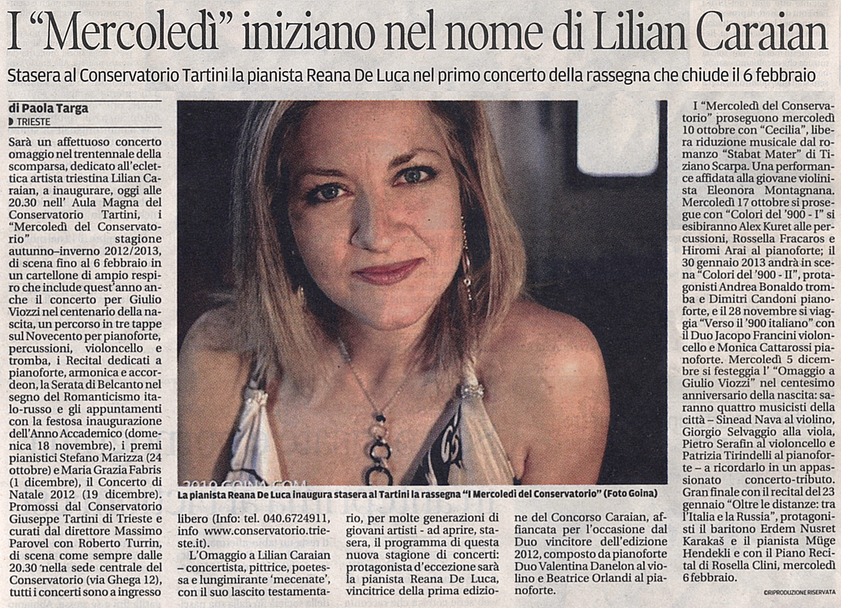 IL PICCOLO | Reana De Luca IL PICCOLO, 3 ottobre 2012. Articolo con mia foto della pianista Reana De Luca. Studio Goina2019-03-13T11:03:10+01:003 Ottobre 2012|Categorie: Rassegna stampa|Tag: Il Piccolo, Ritratto| Condividi l'articolo! FacebookXLinkedInTumblrPinterestEmail Post correlati INTERVISTA RADIOFONICA a “Calle degli orti grandi” di Radio Capodistria, con Rosanna Bubola e Massimo Goina INTERVISTA RADIOFONICA a “Calle degli orti grandi” di Radio Capodistria, con Rosanna Bubola e Massimo Goina Campagna Pubblicitaria per il corso triennale della “Casa Immacolata” a Udine Campagna Pubblicitaria per il corso triennale della “Casa Immacolata” a Udine APPARTENENZE. Sguardi Dal territorio. Apertura mostra di Massimo Goina per Gorizia Capitale Europea della Cultura GO!2025. APPARTENENZE. Sguardi Dal territorio. Apertura mostra di Massimo Goina per Gorizia Capitale Europea della Cultura GO!2025. Documentazione fotografica di eventi scientifici internazionali presso Elettra Sincrotrone Documentazione fotografica di eventi scientifici internazionali presso Elettra Sincrotrone Il filosofo Giovanni Grandi per la copertina della rivista Credere Il filosofo Giovanni Grandi per la copertina della rivista Credere
